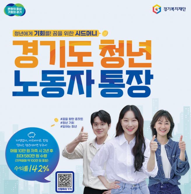 경기도 청년이 매달 근로하며 10만 원을 저축하면, 2년 후 580만 원의 목돈을 마련할 수 있는 경기도 청년 노동자 통장이 있습니다. 지원 자격을 미리 확인하고, 신청 기간에 꼭 신청하시기 바랍니다.