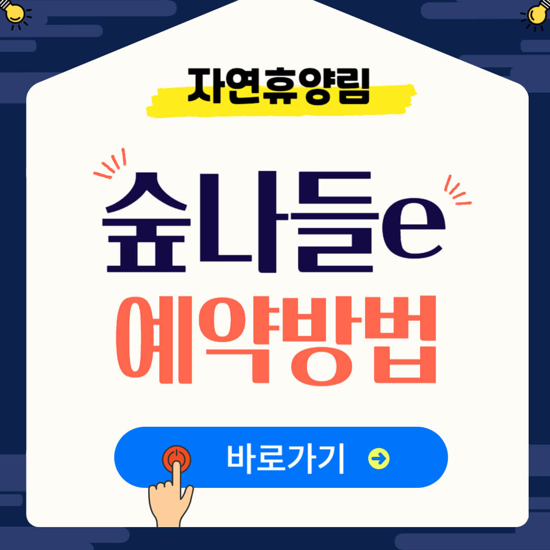 국립자연휴양림은 '숲나들e'라는 온라인 예약 시스템을 통해 손쉽게 예약을 진행할 수 있습니다. 자연휴양림은 선착순 예약으로 진행되니 조기 마감되기 전에 숲나들e를 통해 빠른 신청 하시기 바랍니다.