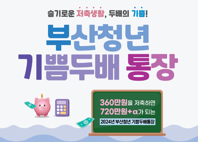 부산 청년이라면, 정부가 1+1으로 매칭하여 최대 720만원 지원금을 지급하는 '부산청년 기쁨두배통장' 신청 기회 놓치지 말고 신청하세요.