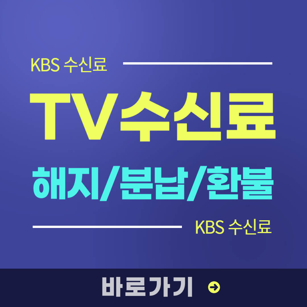 최근 KBS 수신료 인상에 대한 논의도 활발히 되고 있어 TV 시청을 하지 않는 가정에서는 빠르게 해지 신청하셔서 불필요한 비용 발생을 막아보시기 바랍니다.